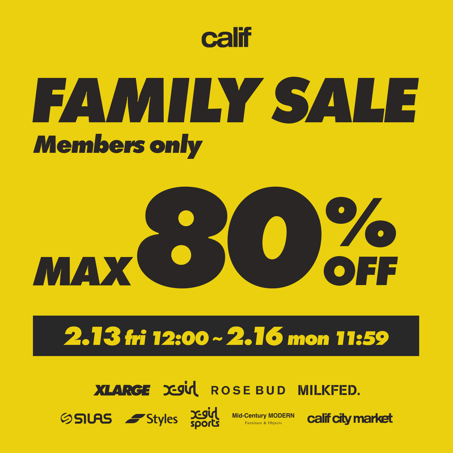 califメンバー限定で、対象アイテムをファミリーセール限定価格で販売!
