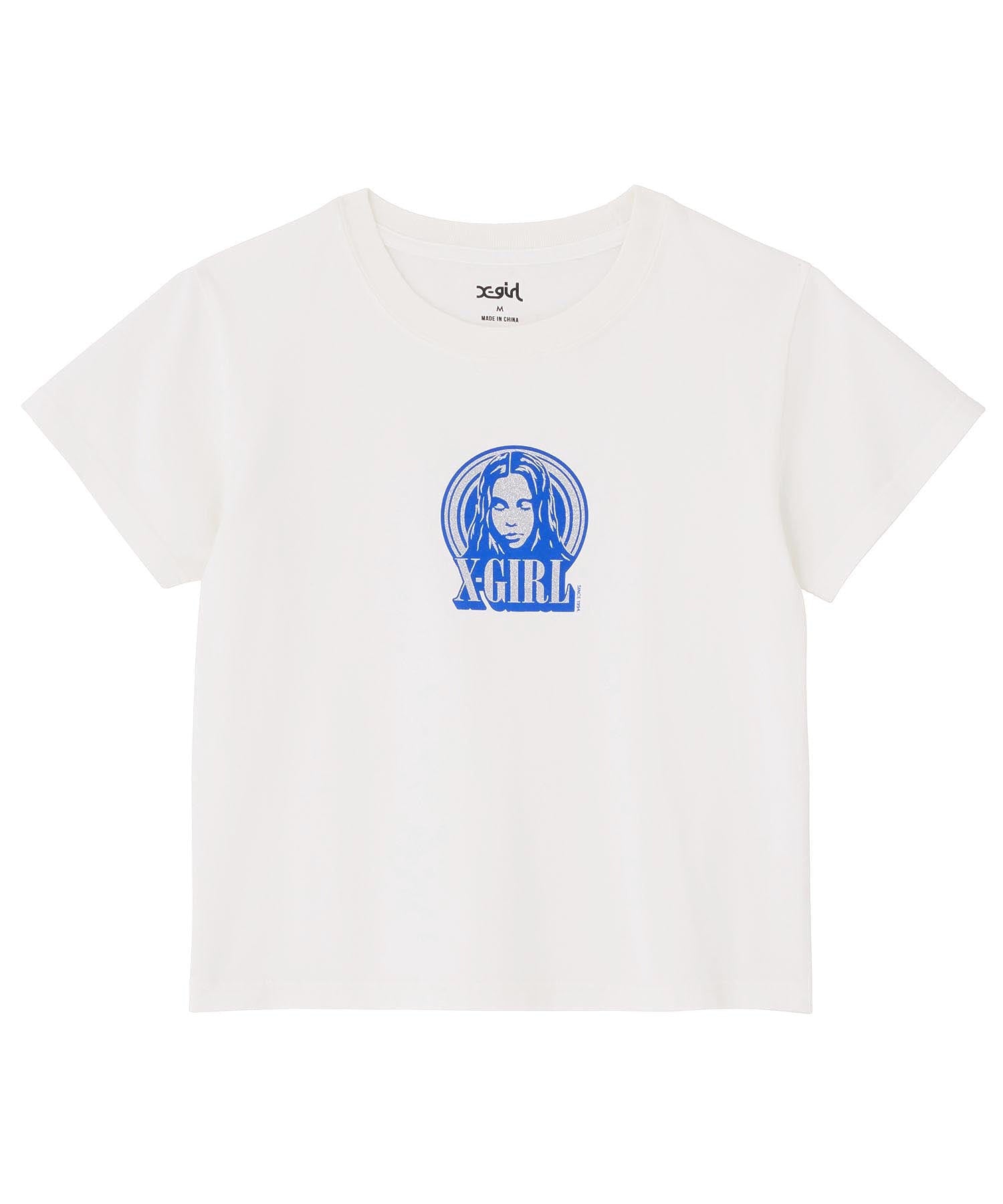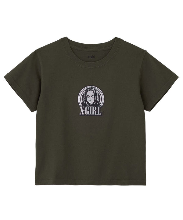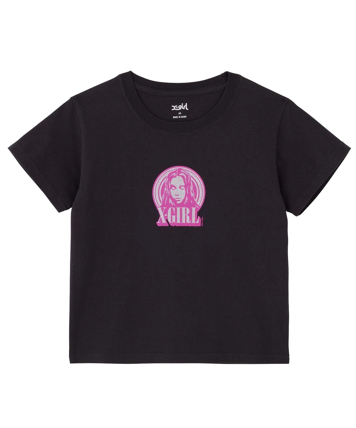 GLITTER CIRCLE BACKGROUND FACE LOGO S/S BABY TEE X-girl