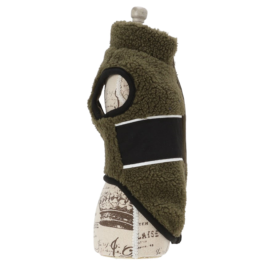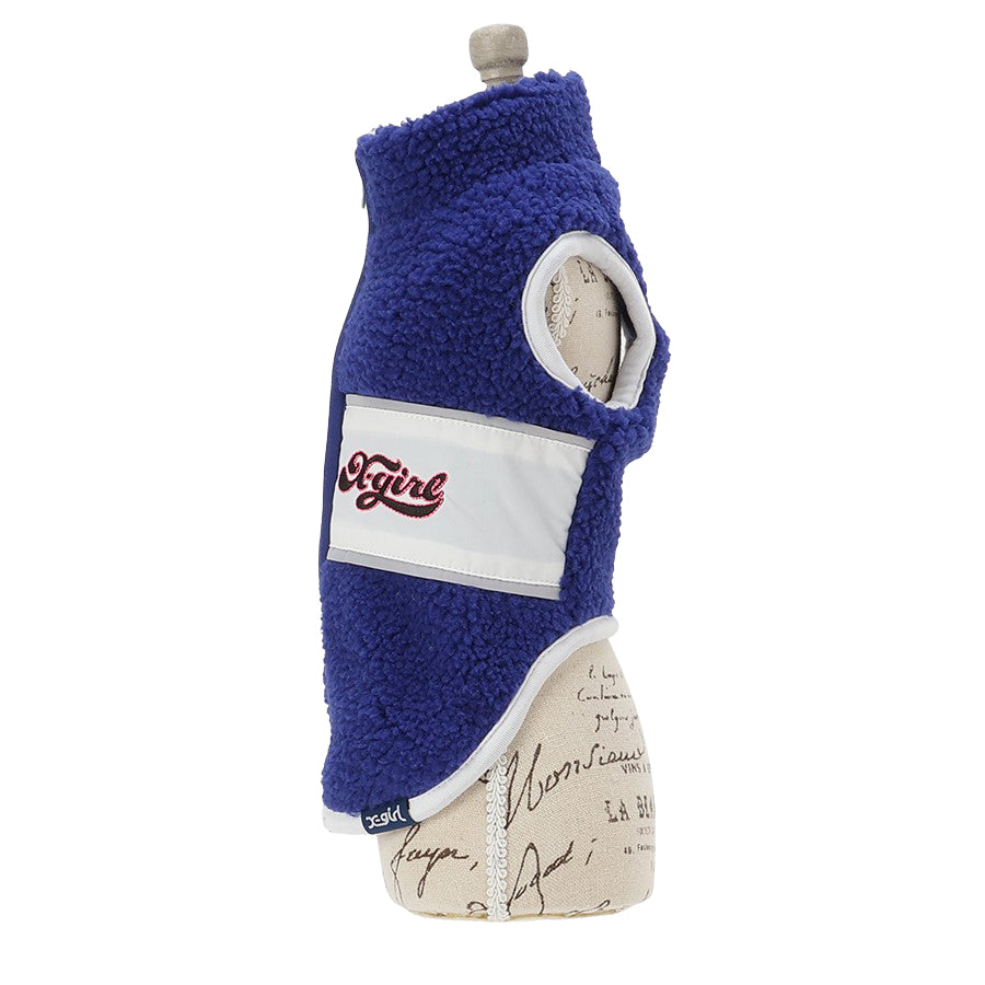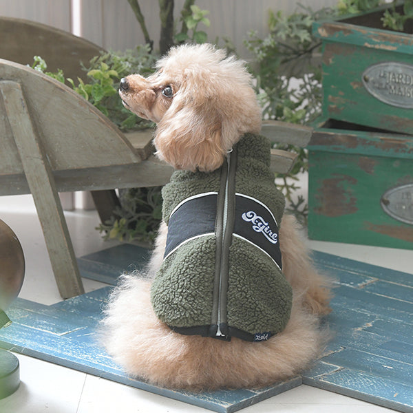 表生地はボア、中は柔らかいフリース素材で軽くて暖かく、ファスナー仕様で着脱もラク!