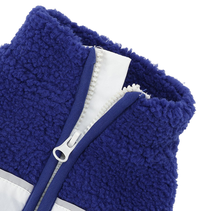 大胆なバイカラーデザインに立体ロゴが映えるあったかフリースです。