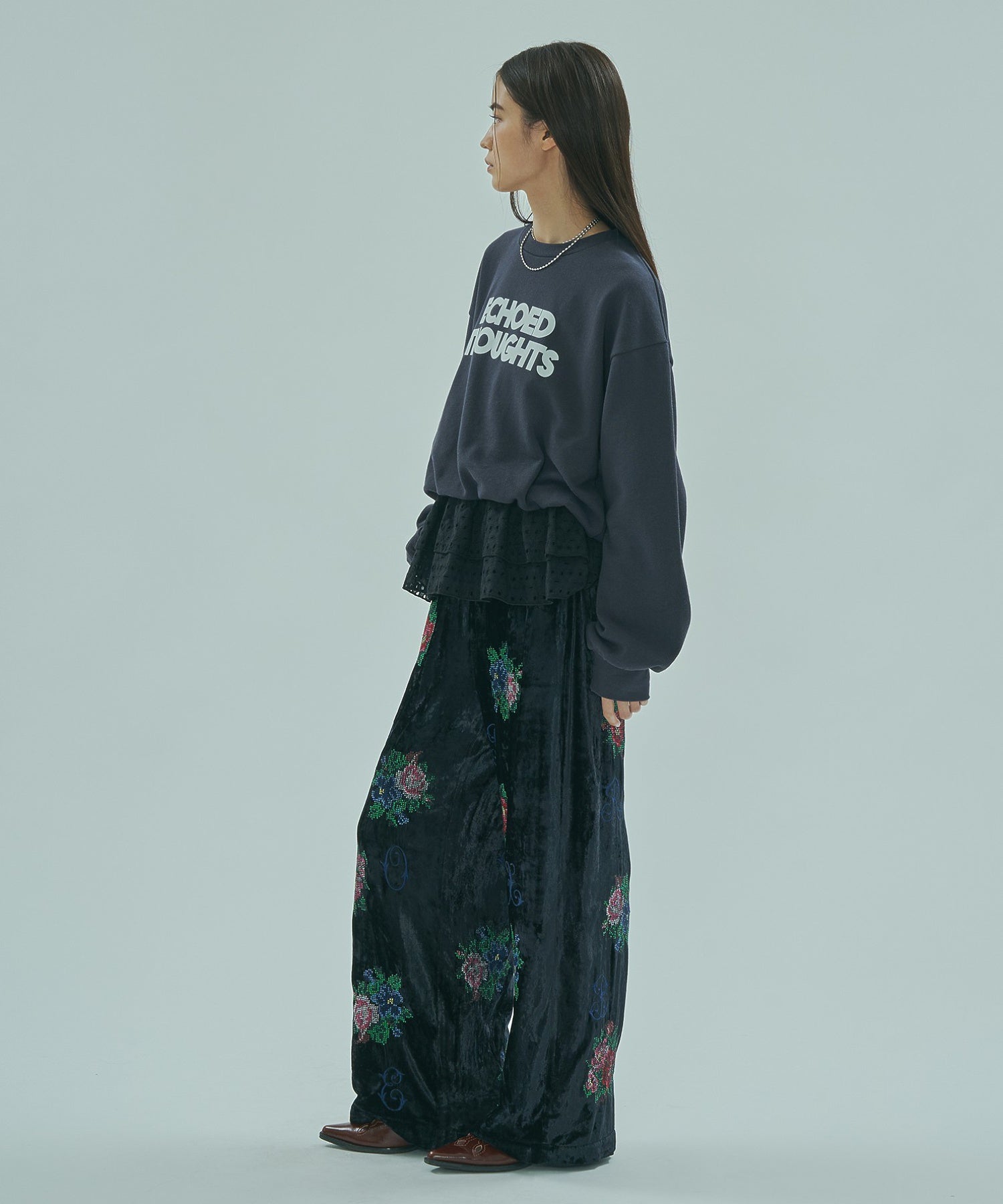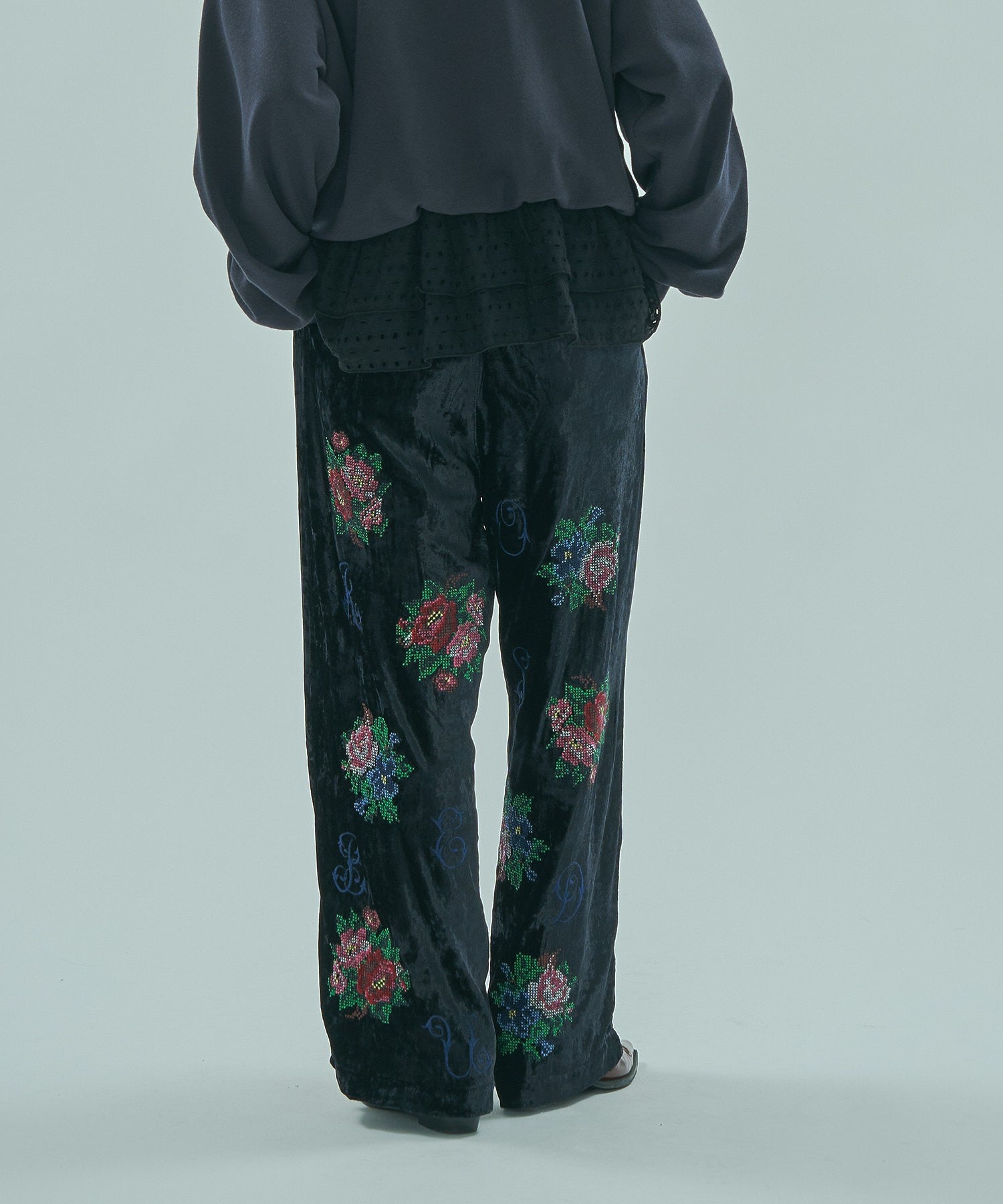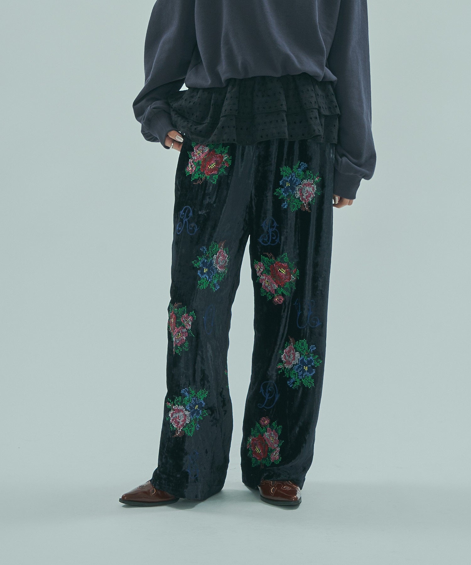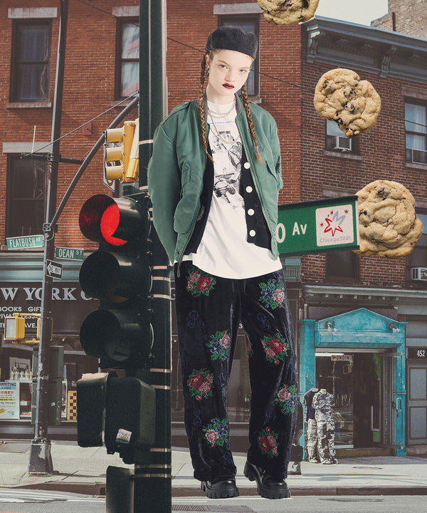 ROSE BUDオリジナル柄のベロアワイドパンツ