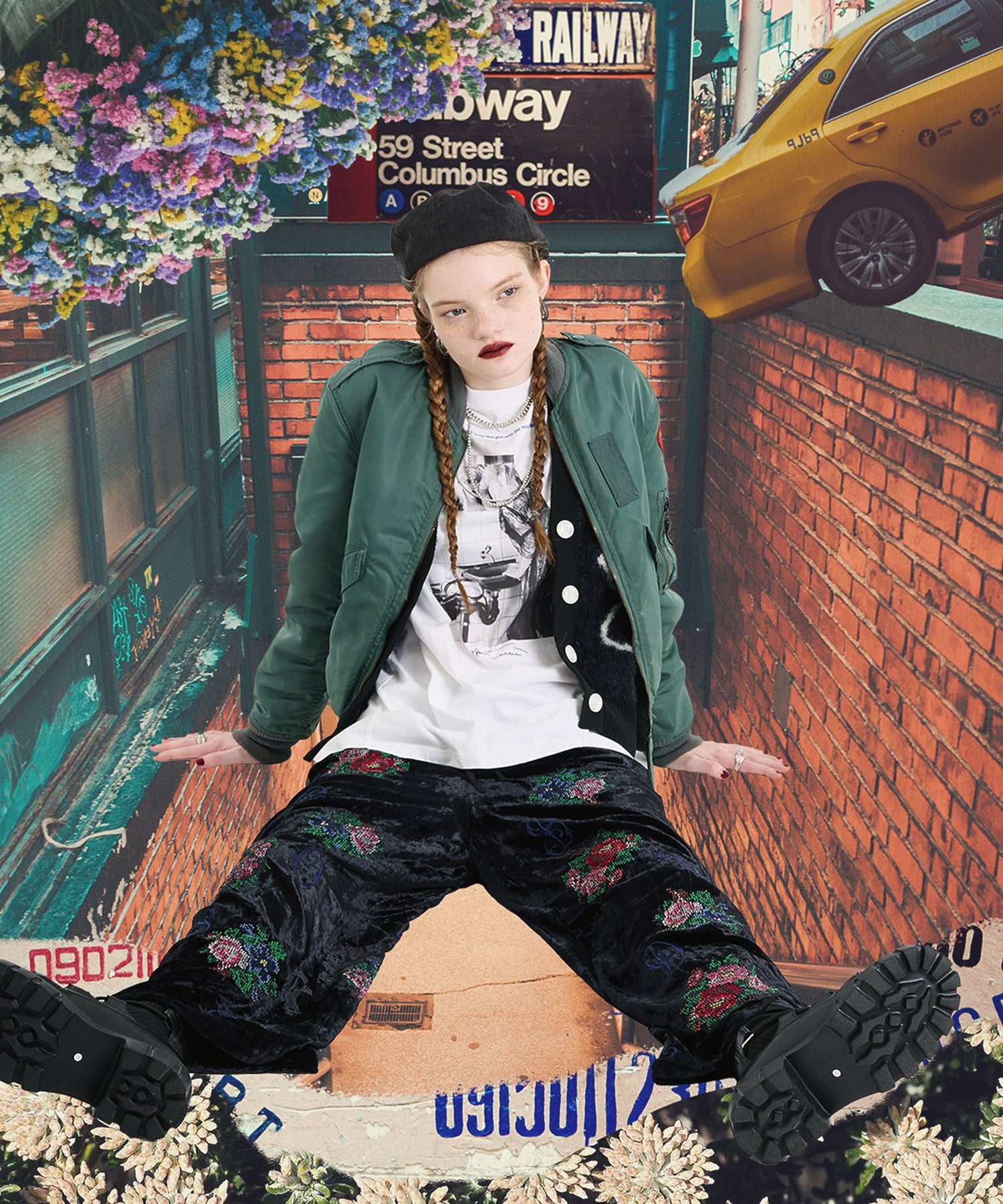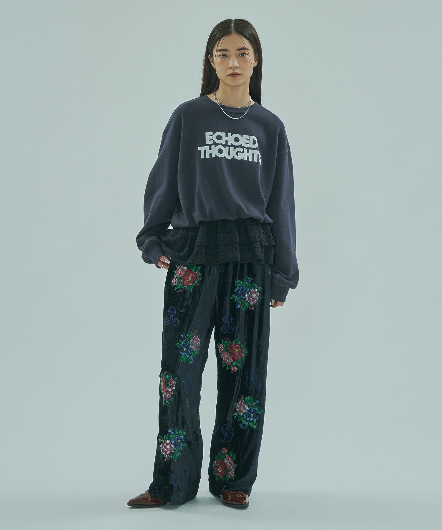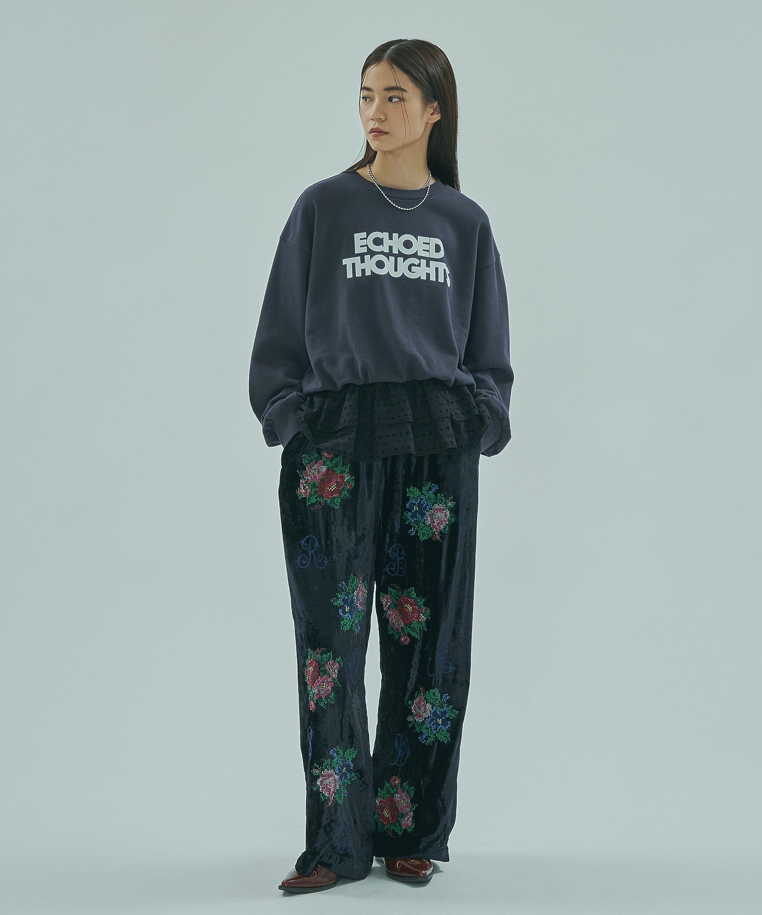 ROSE BUDオリジナル柄のベロアワイドパンツ