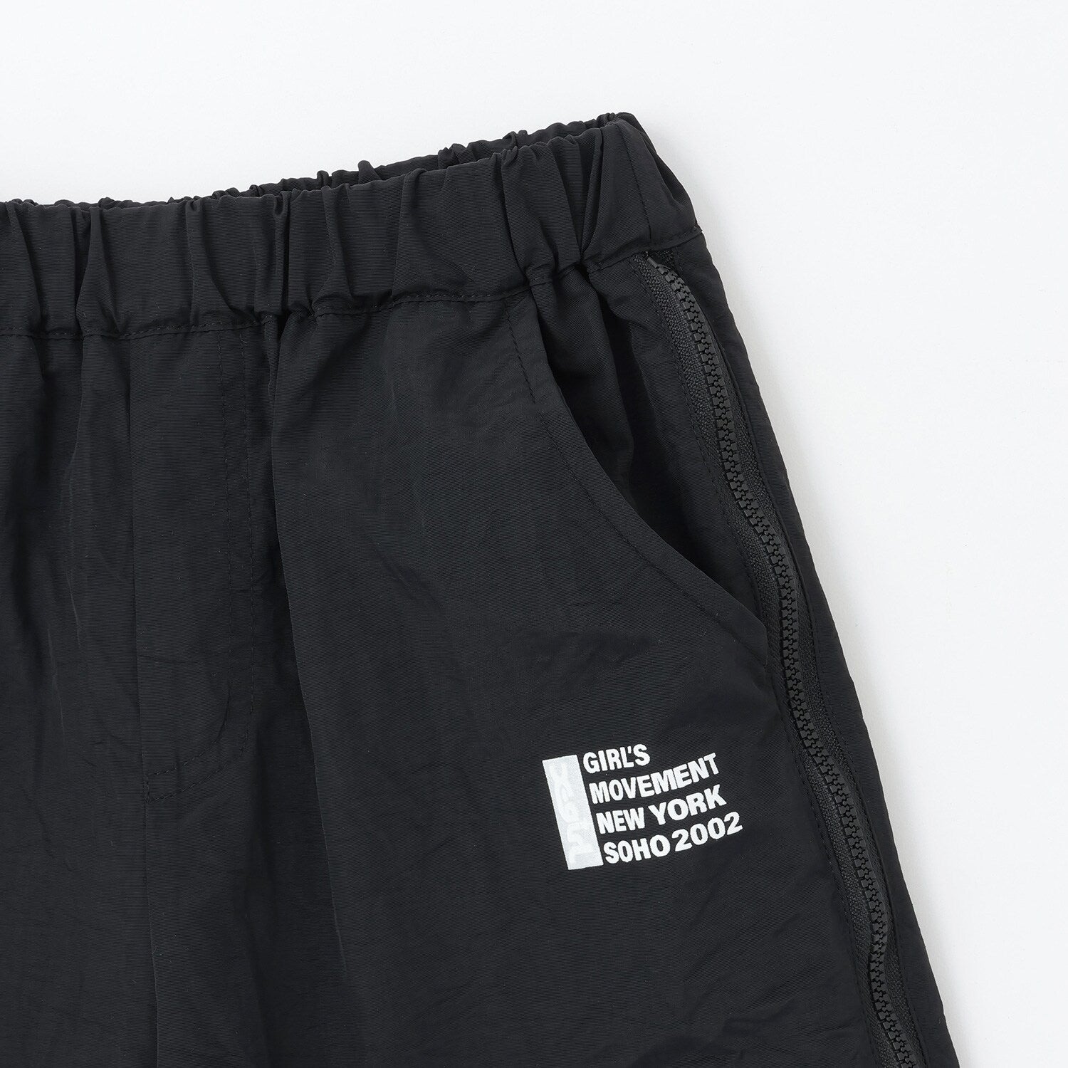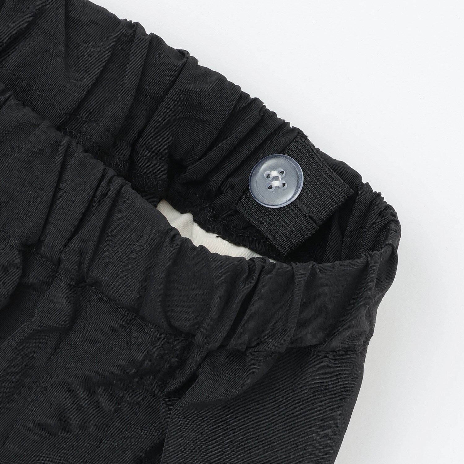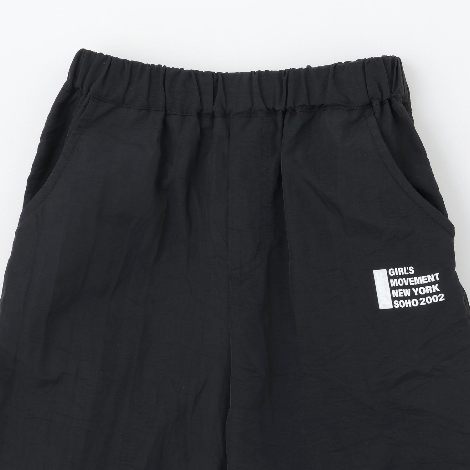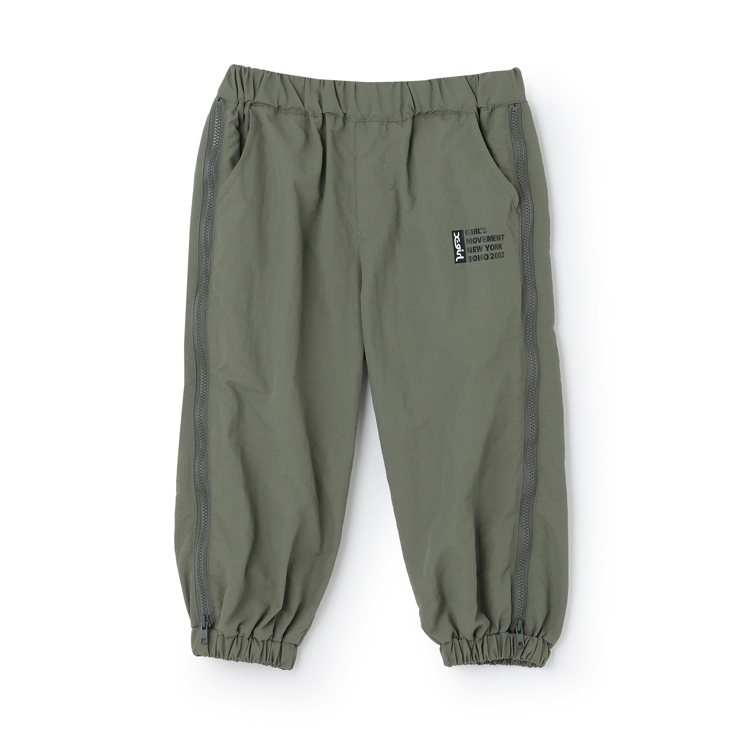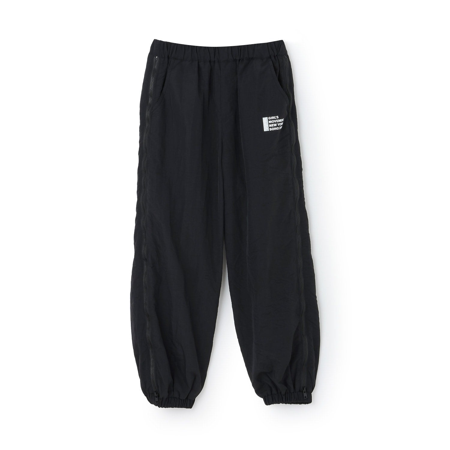 シャカシャカ素材を使用した裾絞りのパンツです。