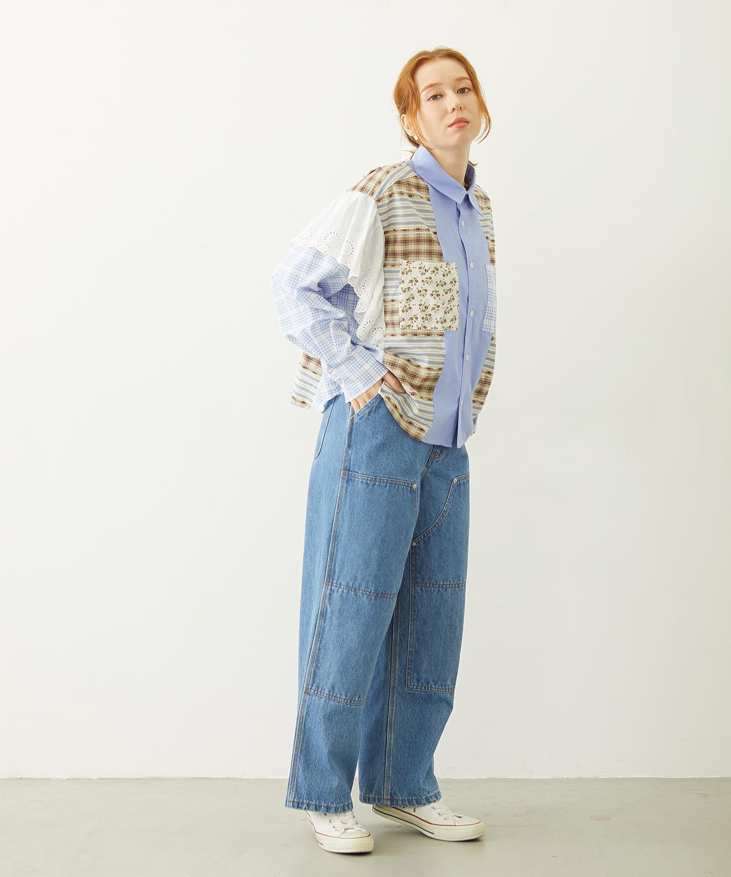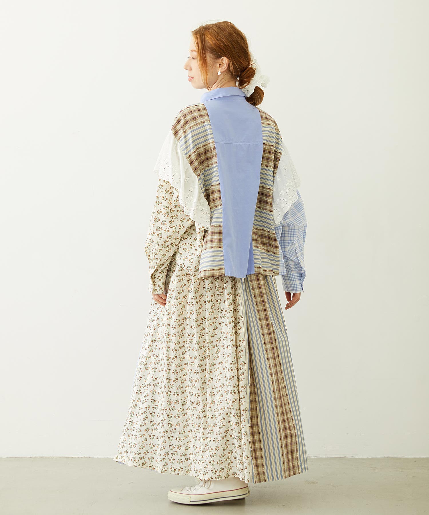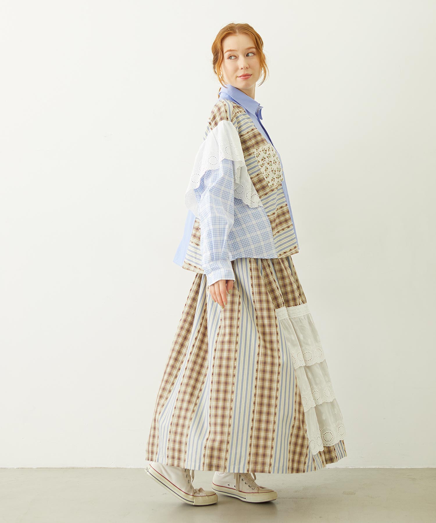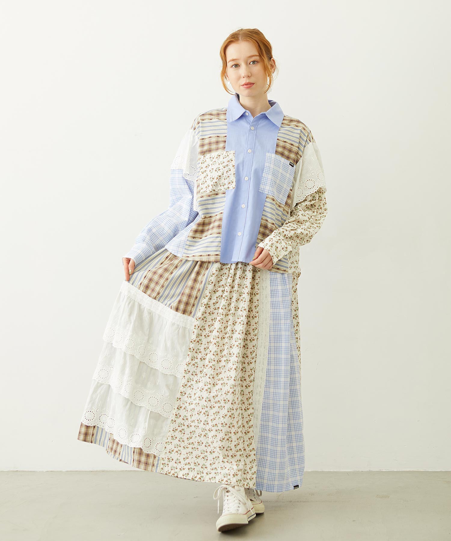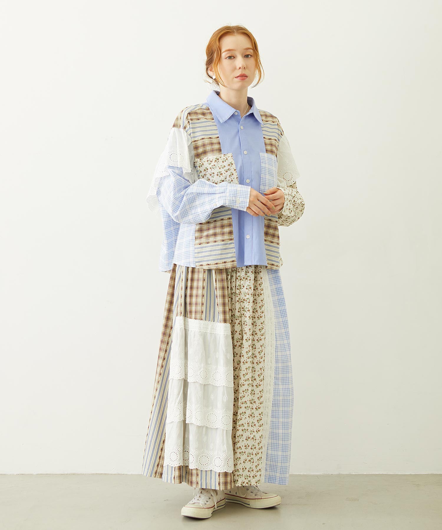 素材 無地部分:ポリエステル56% 綿44% チェックA:綿100% チェックB:綿63% ポリエステル37% 花柄部分:綿77% レーヨン19% 麻4% レース部分:綿100%