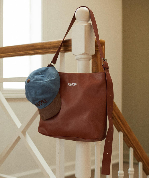 合皮素材でしっかりした雰囲気ながら、カジュアルな装いにもコーデしやすいデザインに仕上がっています。