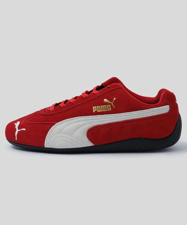 そのSPEEDCATが今再び柔らかいスエードと高級レザーを用い、オリジナルの赤と黒のカラーウェイで登場。前足部には新しい PUMA キャット ロゴを備えています。