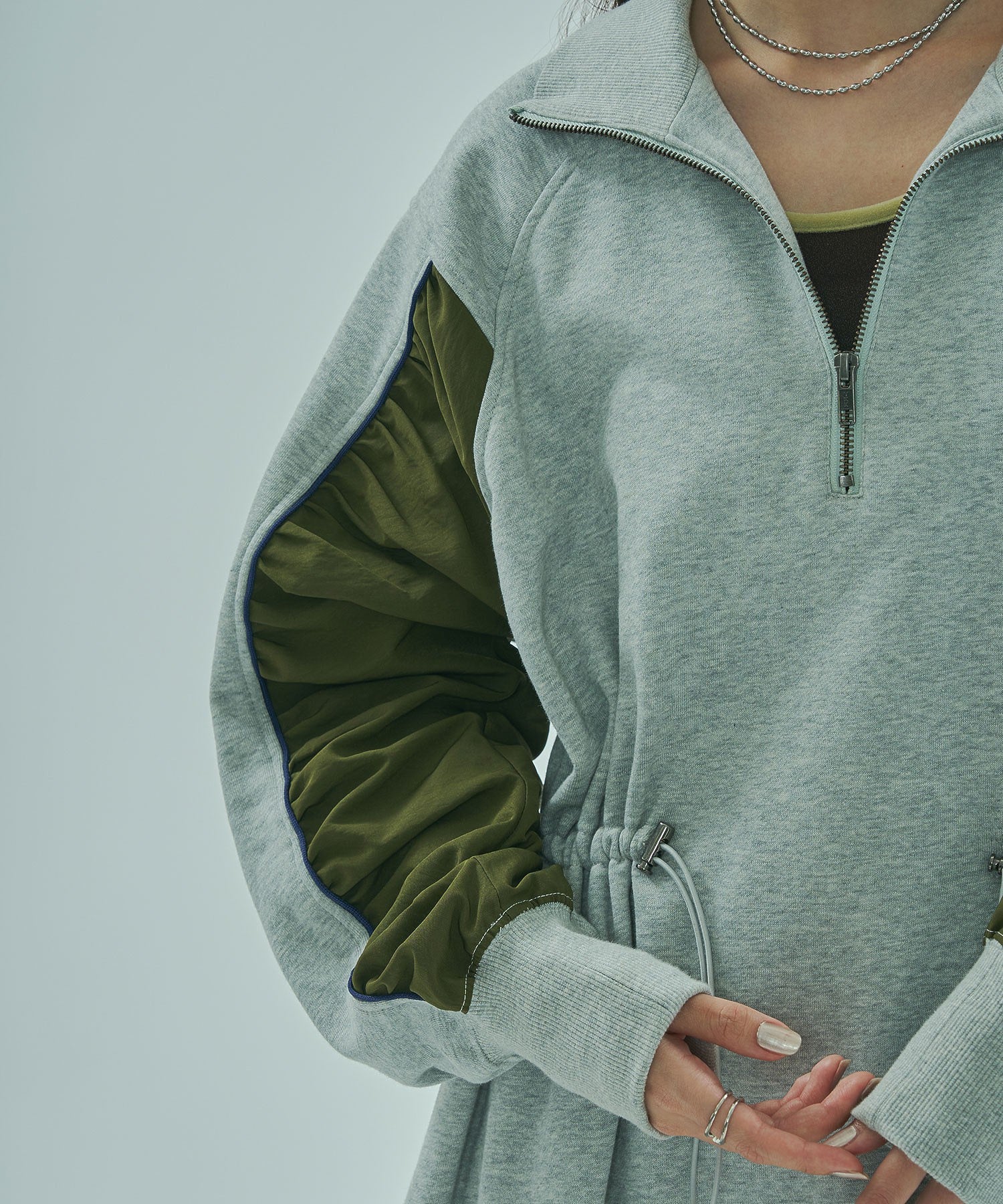 素材 本体:綿57% ポリエステル43% リブ:綿95% ポリウレタン5% 別布部分:ポリエステル100%