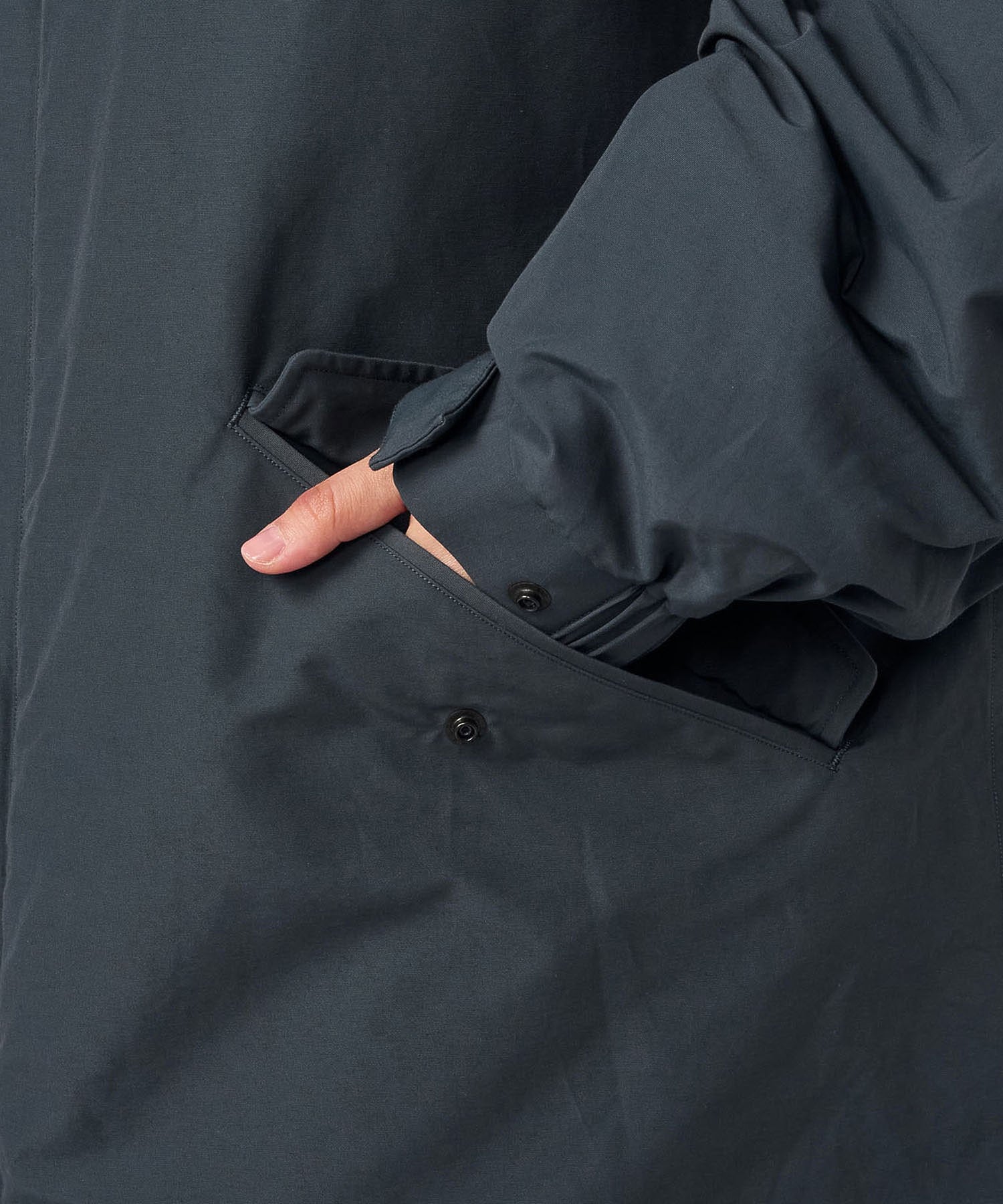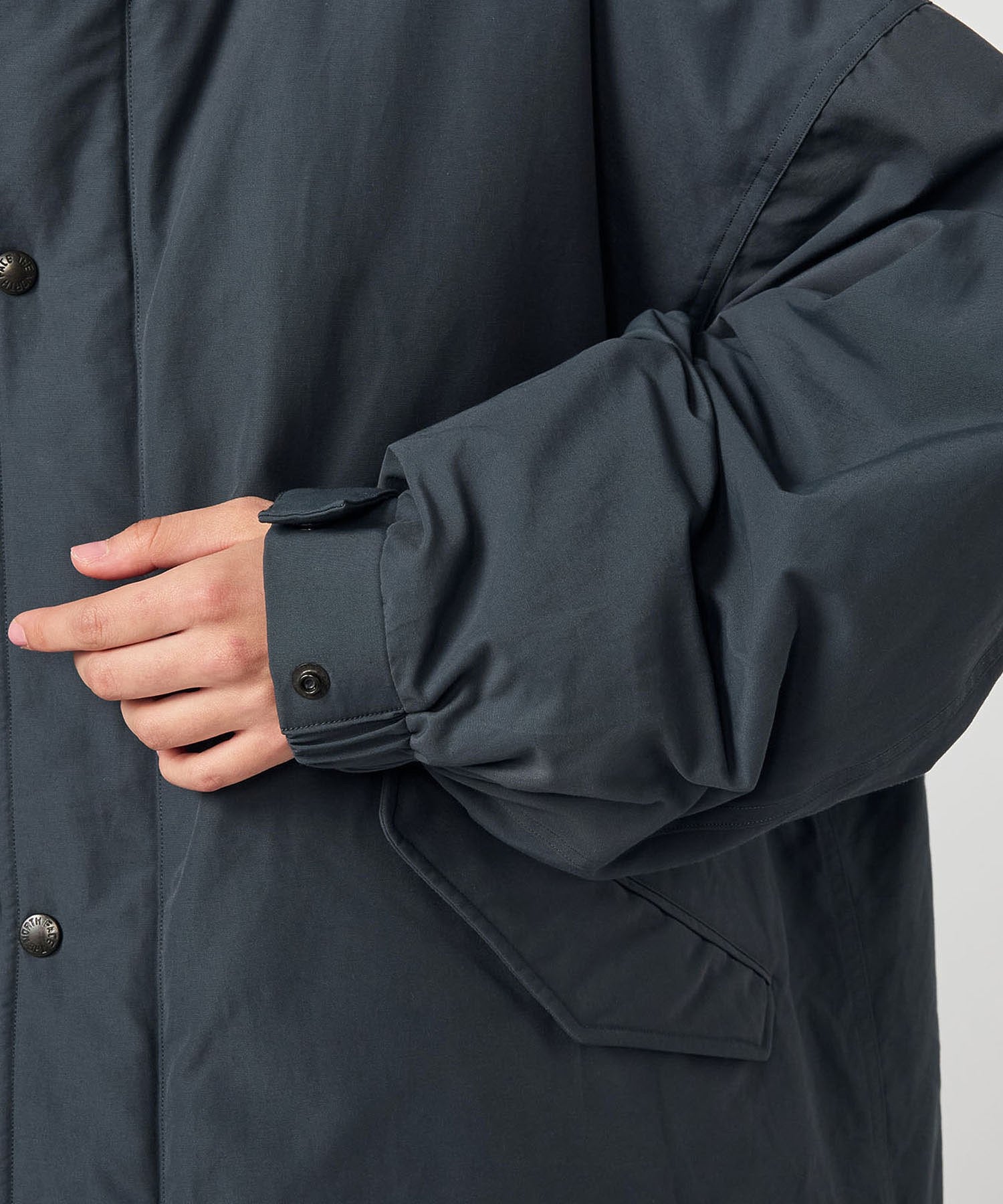 ・袖口ゴムシャーリング&ドットボタン仕様で風の侵入を防止