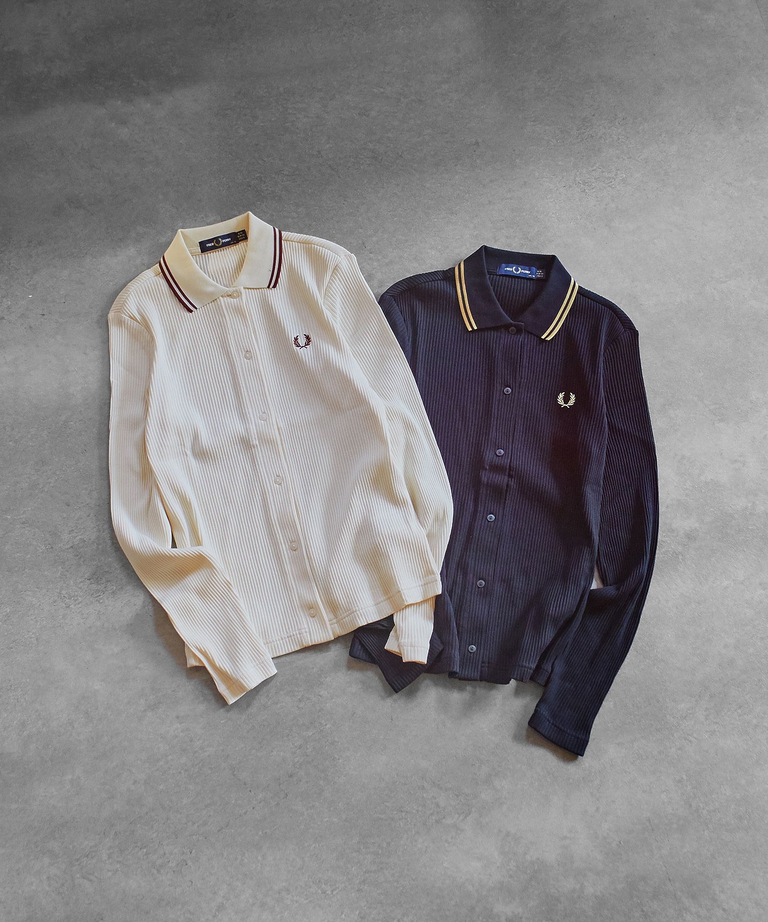 FRED PERRY/BUTTON-THROUGH RIB POLO SHIRT