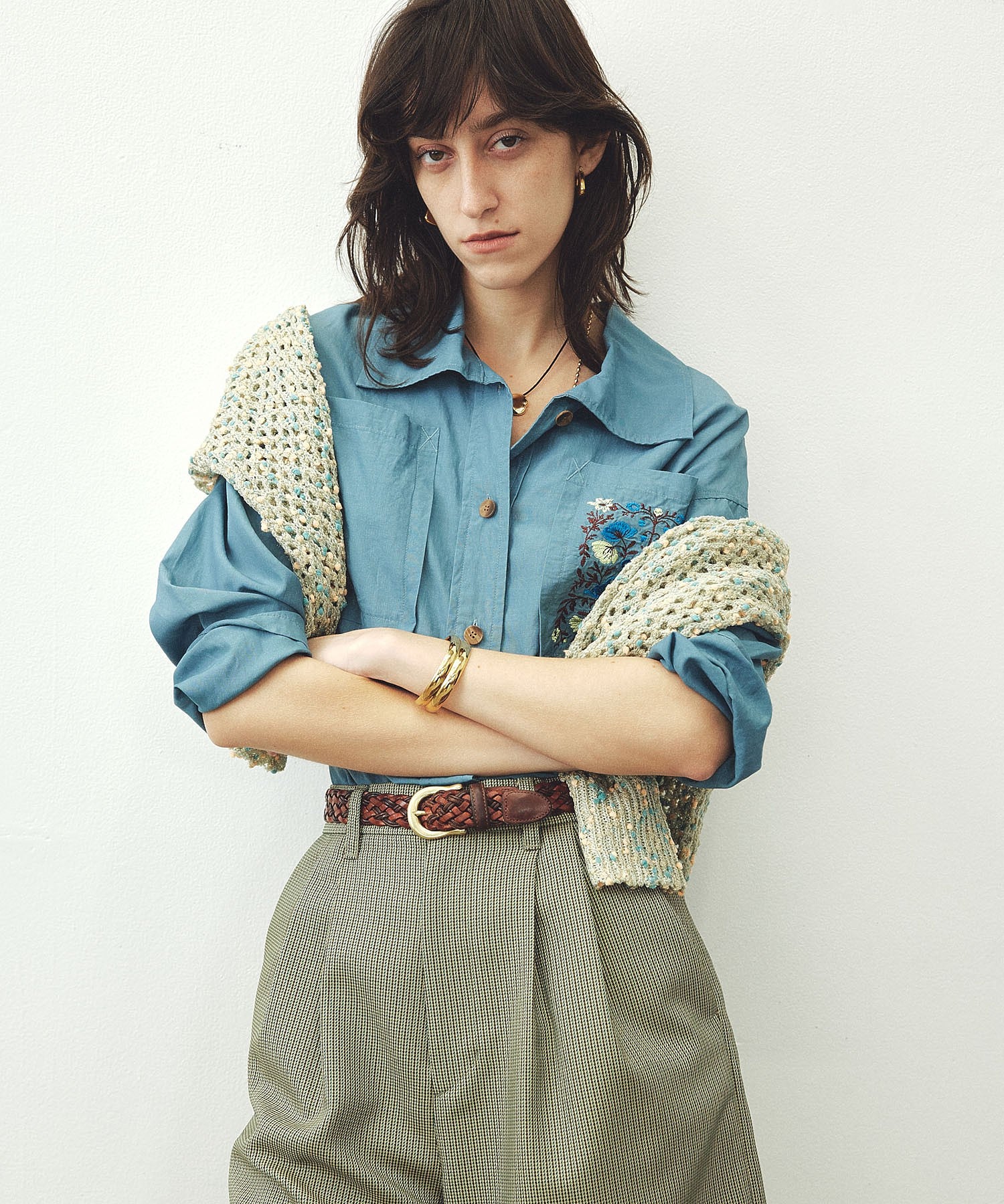 ビッグポケットと刺繍が効いているので、シンプルなボトム合わせでもアクセントになります。