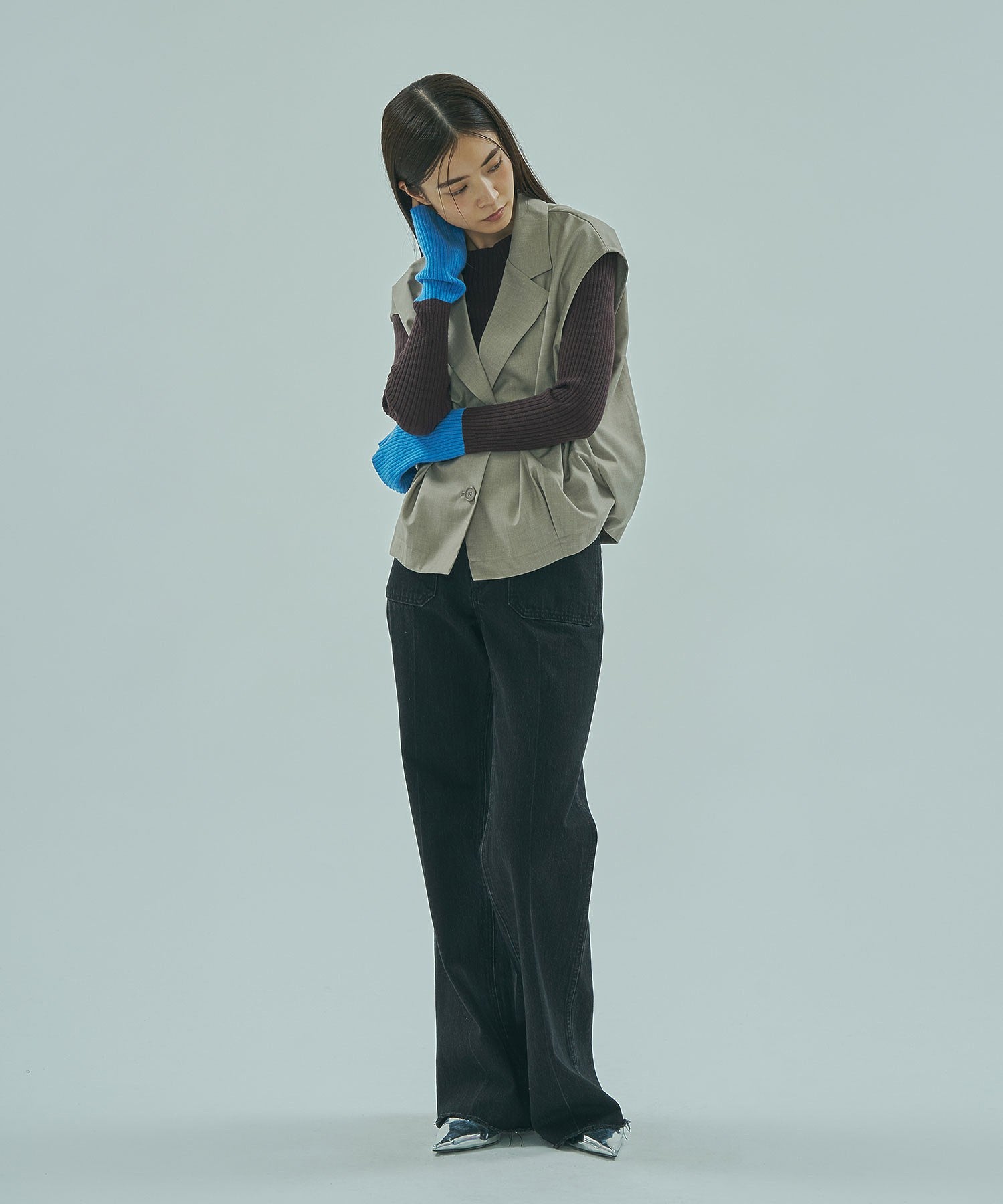 素材 BROWN:ポリエステル79% レーヨン15% ポリウレタン6% GREY:ポリエステル100%