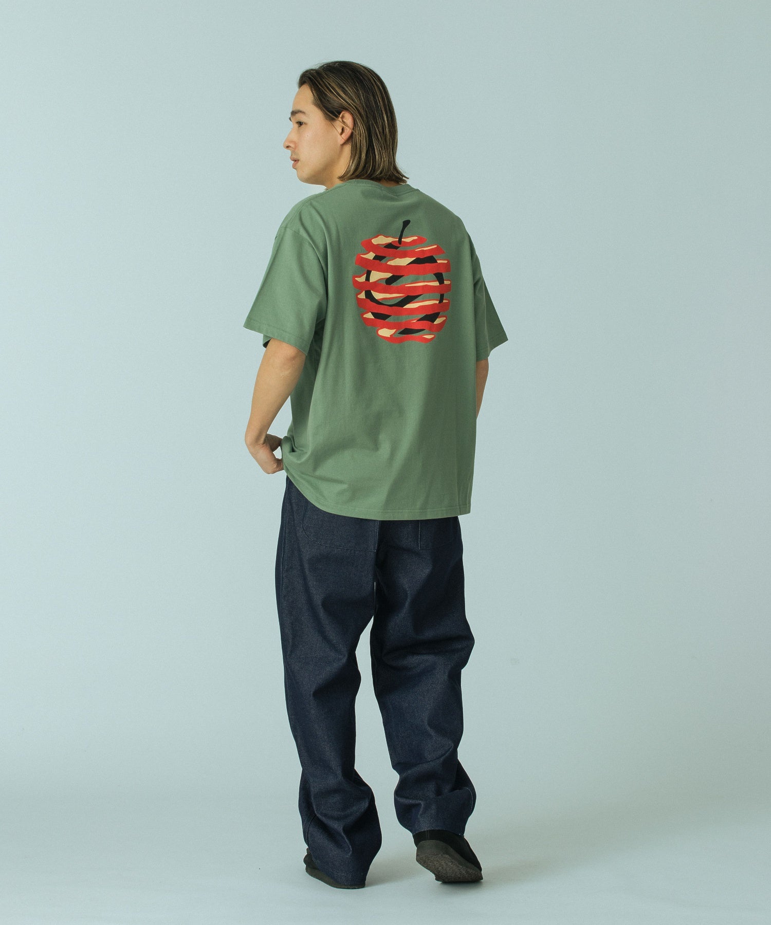・螺旋図と林檎を組み合わせることで、どことなくオカルトなイメージを取り入れたグラフィックプリント