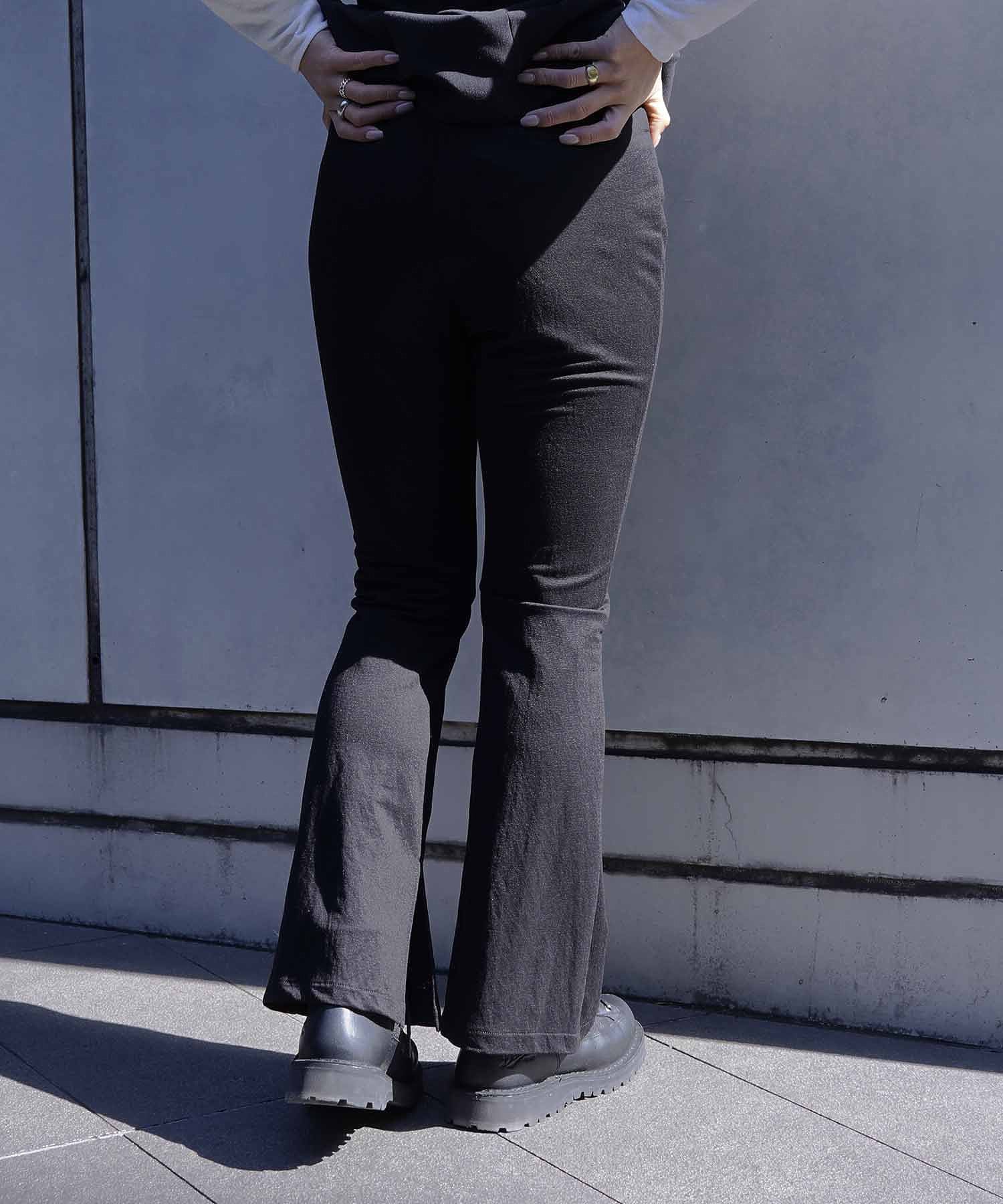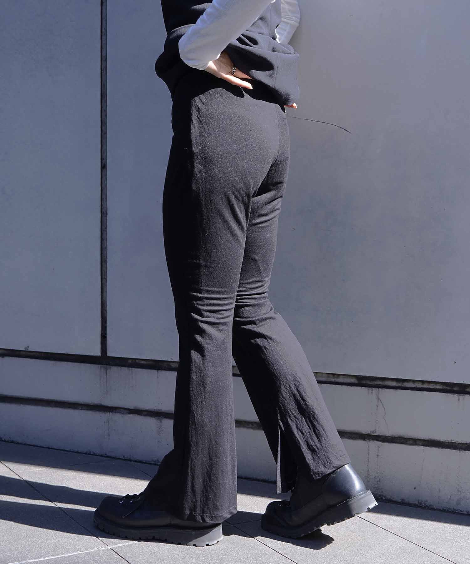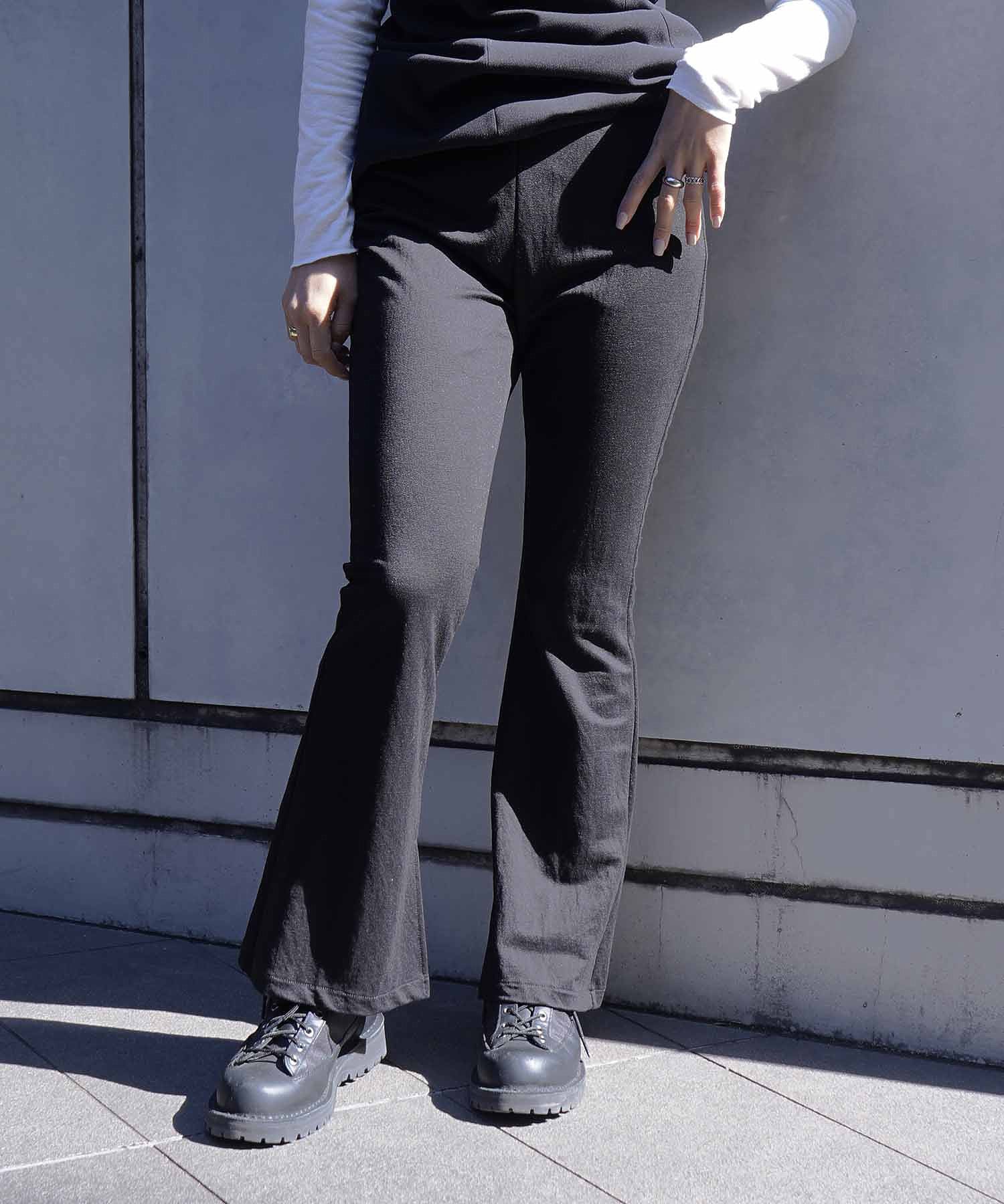 【デザイン】裾に向かってゆるやかなフレアシルエットにデザインされているパンツです。軽くて布帛のような印象で、カジュアルすぎず、さらっと柔らかい印象です。ウエストの裏側のみゴムが入り、裏地が付いています。STAFF 160cm****************年齢:20代前半/普段サイズ:ボトムM・トップスM/レビュー着用サイズ:2着用感:やや大きい着心地:薄手で軽い素材ですが裏地ついているので安心して履いて頂けますおすすめコーディネート:薄手のニットと合わせて女性らしく春らしく着るのが〇***************************************・透け感:なし・裏地:なし・生地の厚さ:薄手・伸縮性:なし・シルエット:ベーシック