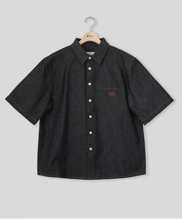 Walk in Parisの ブリュ(未洗い)デニム半袖シャツ。