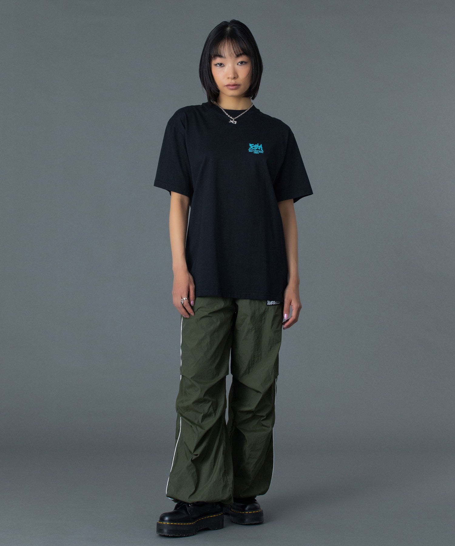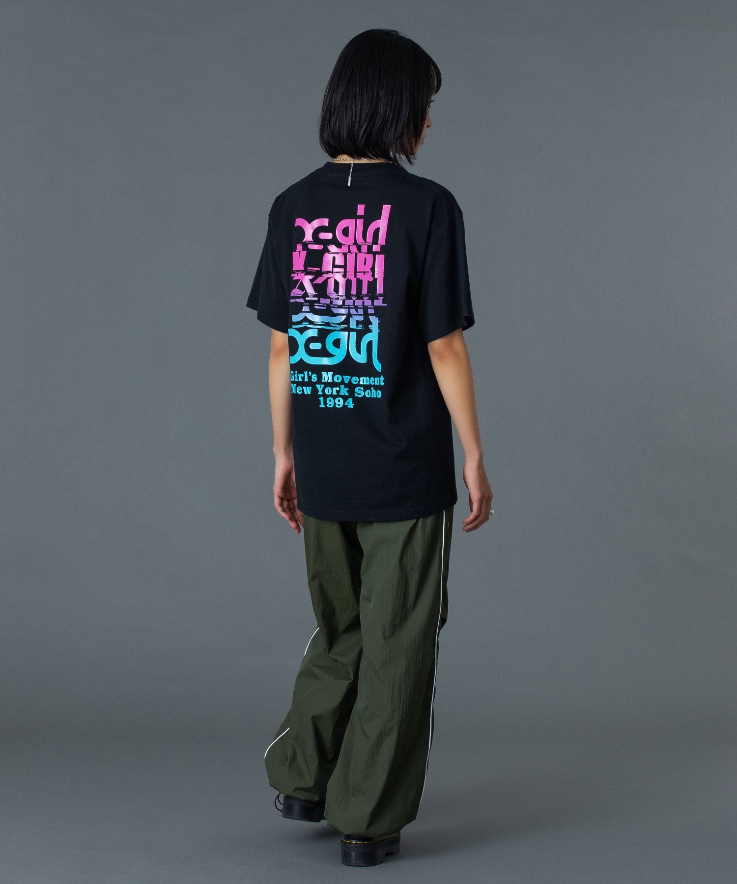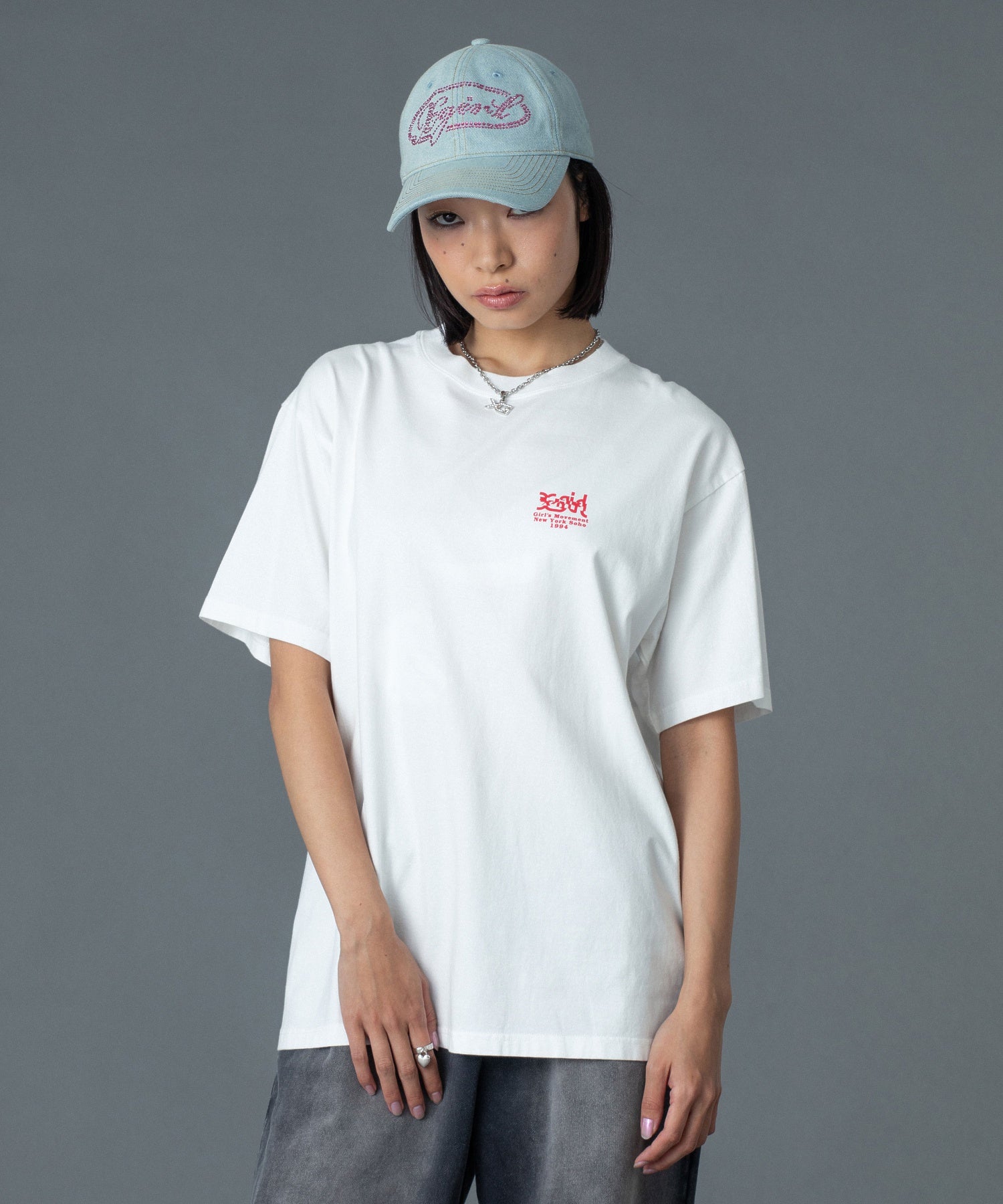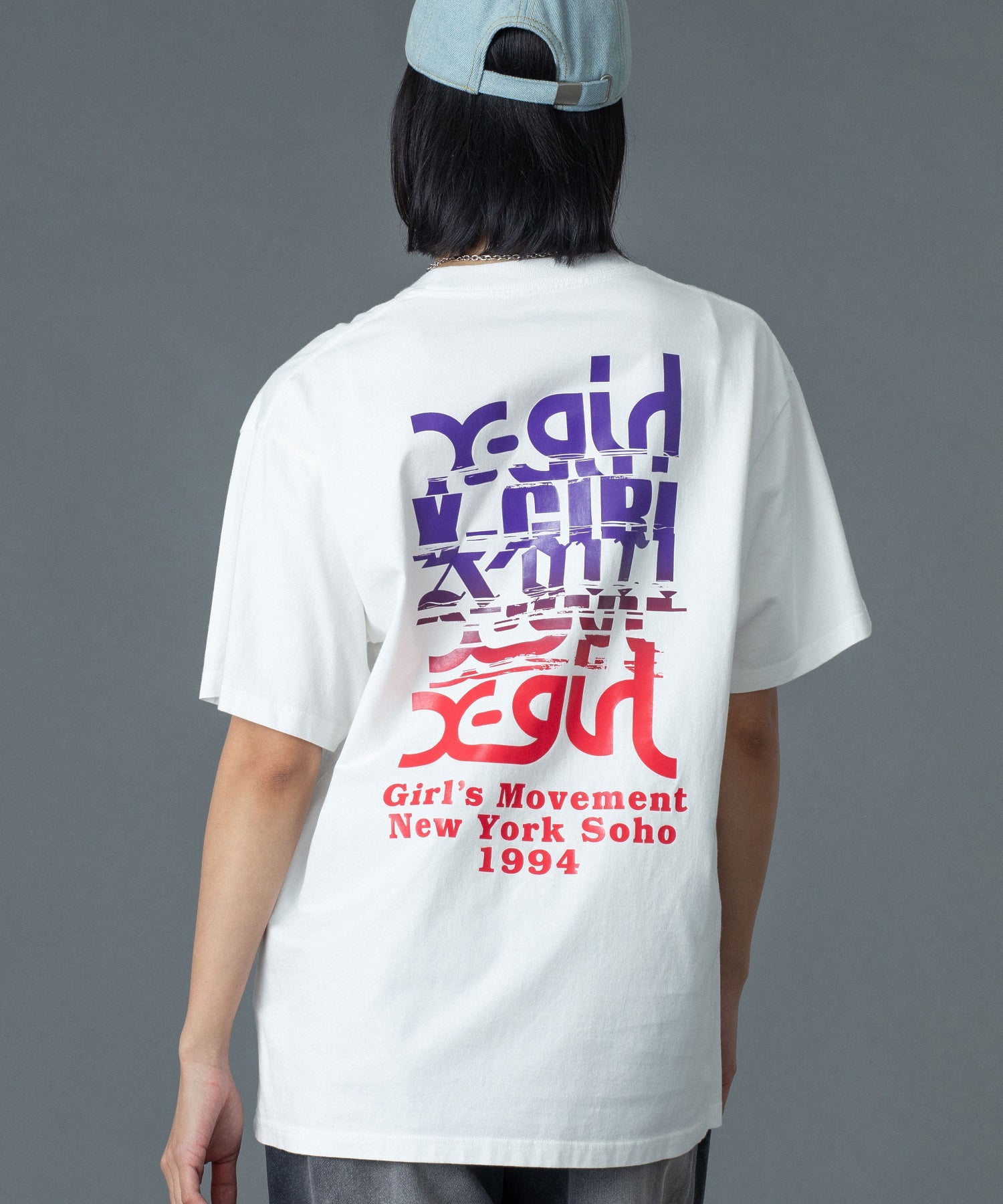 フロントには胸元にX-girlロゴのワンポイント入りで、さりげないアクセントに。