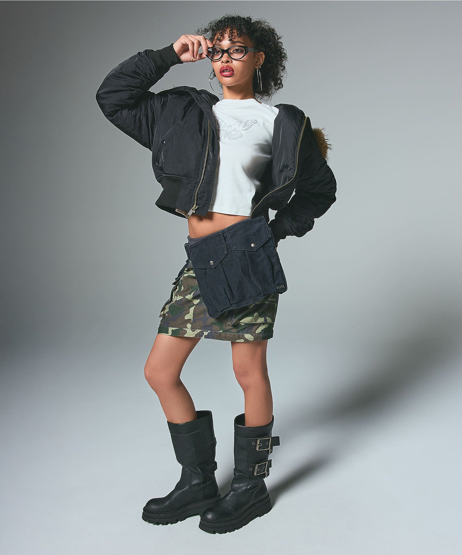 ストリートスタイルにぴったりなルックスで、ショート丈トップスにもオーバーサイズにも好相性。