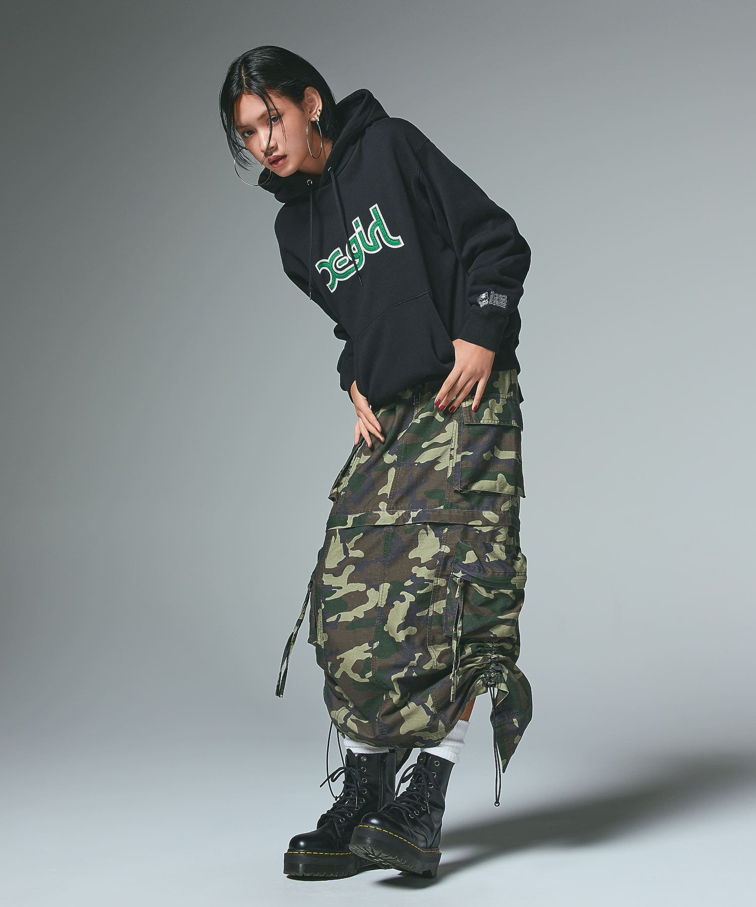 ストリートスタイルに重宝するカーゴスカート。