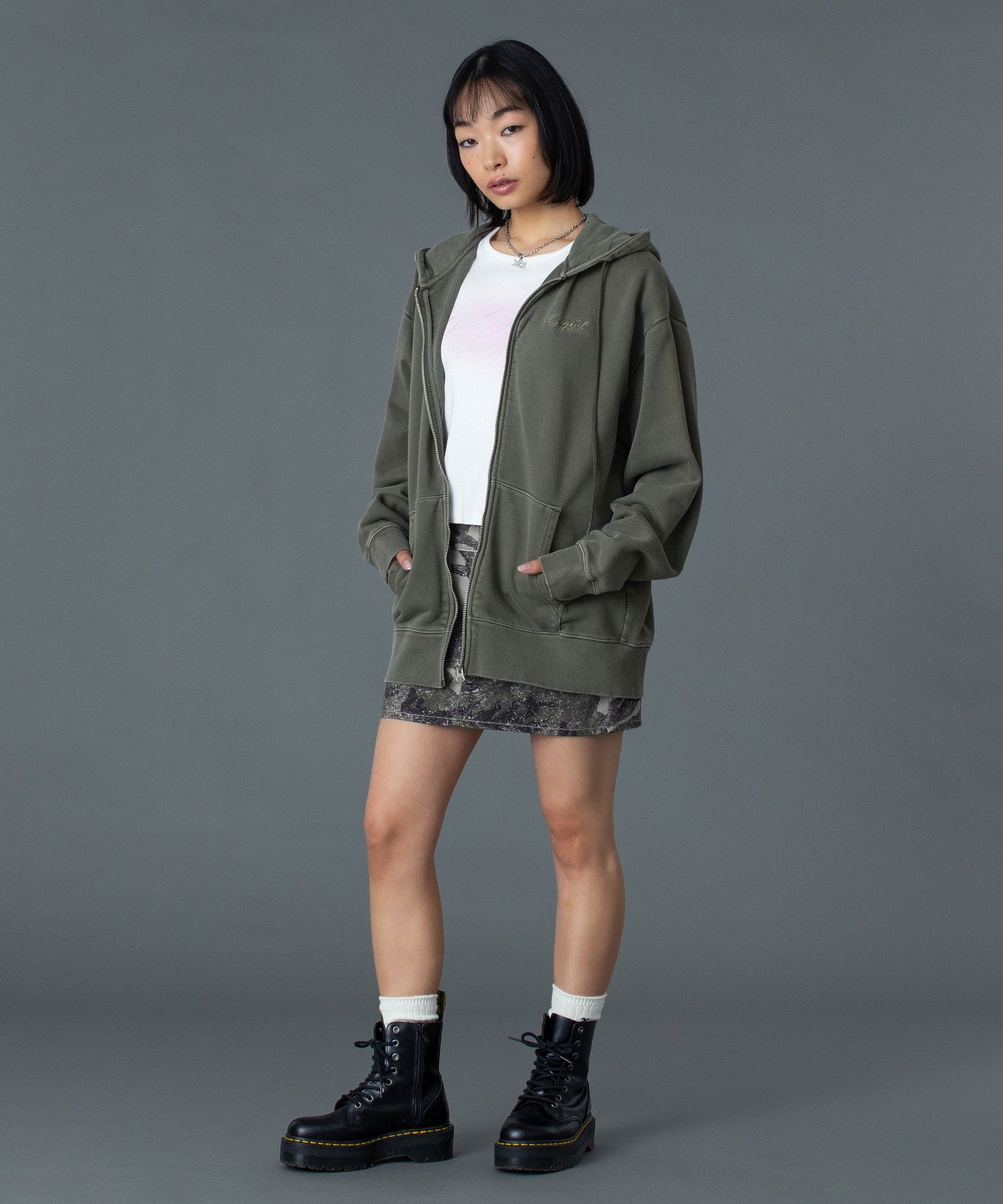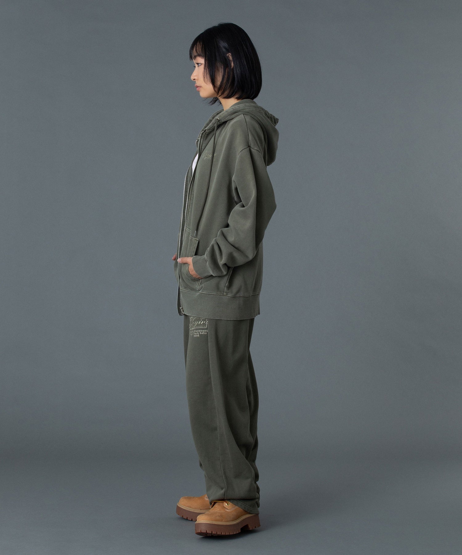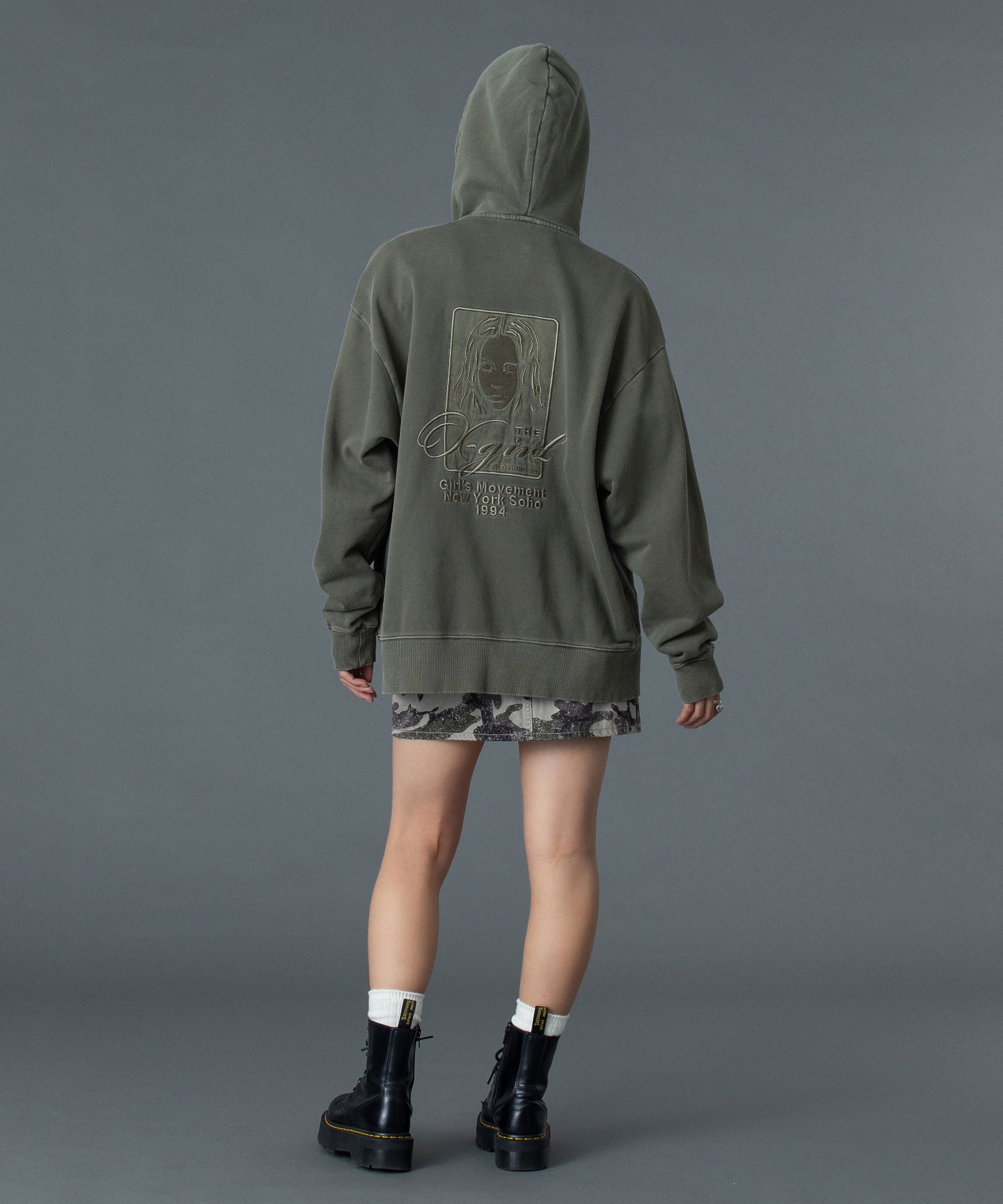 (105261012014)PIGMENT DYED FACE AND LOGO SQUARE PATCH ZIP UP SWEAT HOODIE