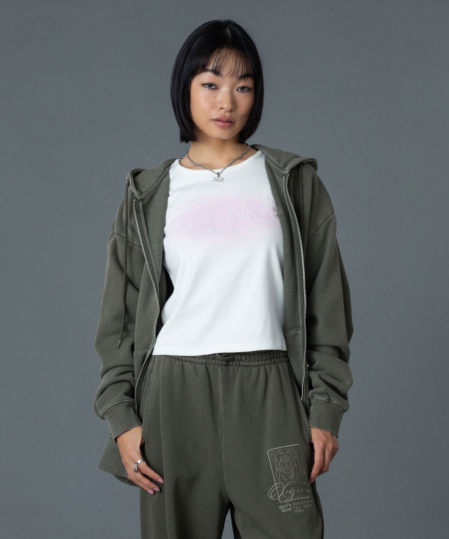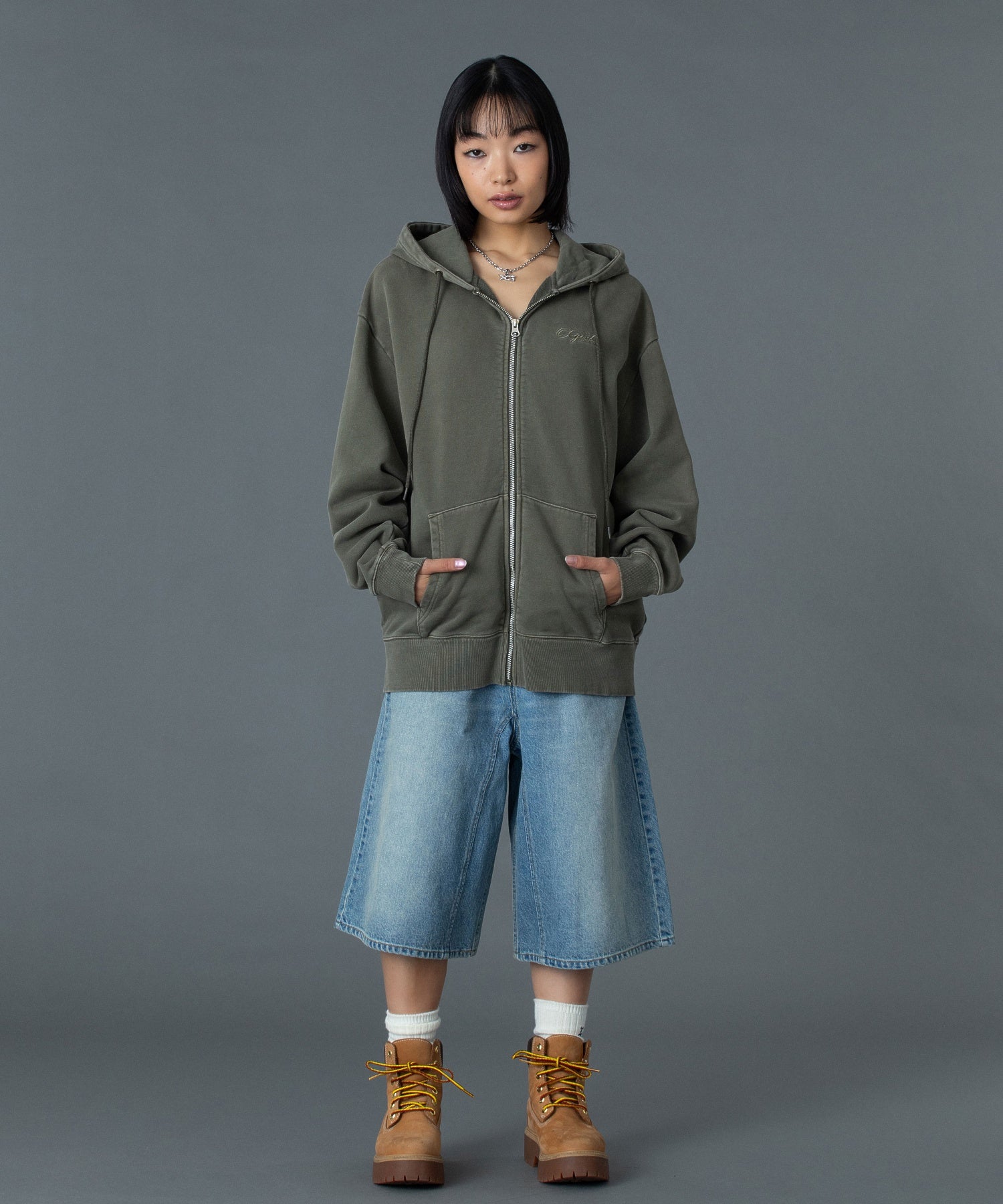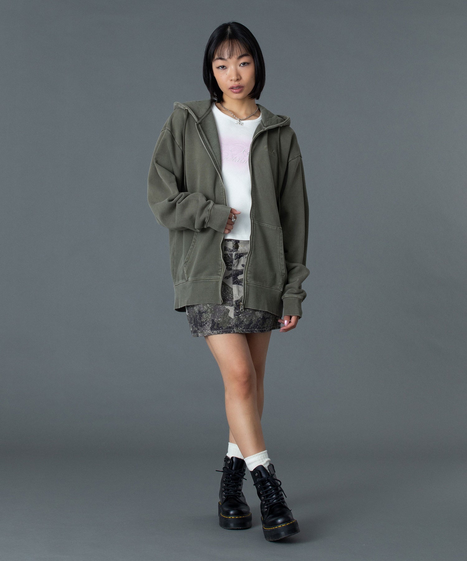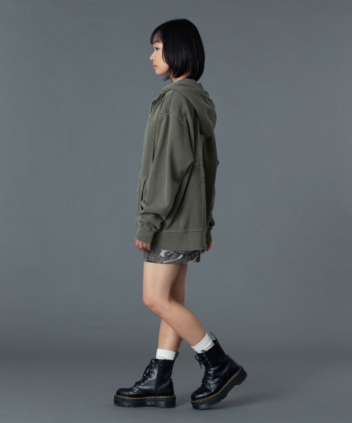 (105261012014)PIGMENT DYED FACE AND LOGO SQUARE PATCH ZIP UP SWEAT HOODIE