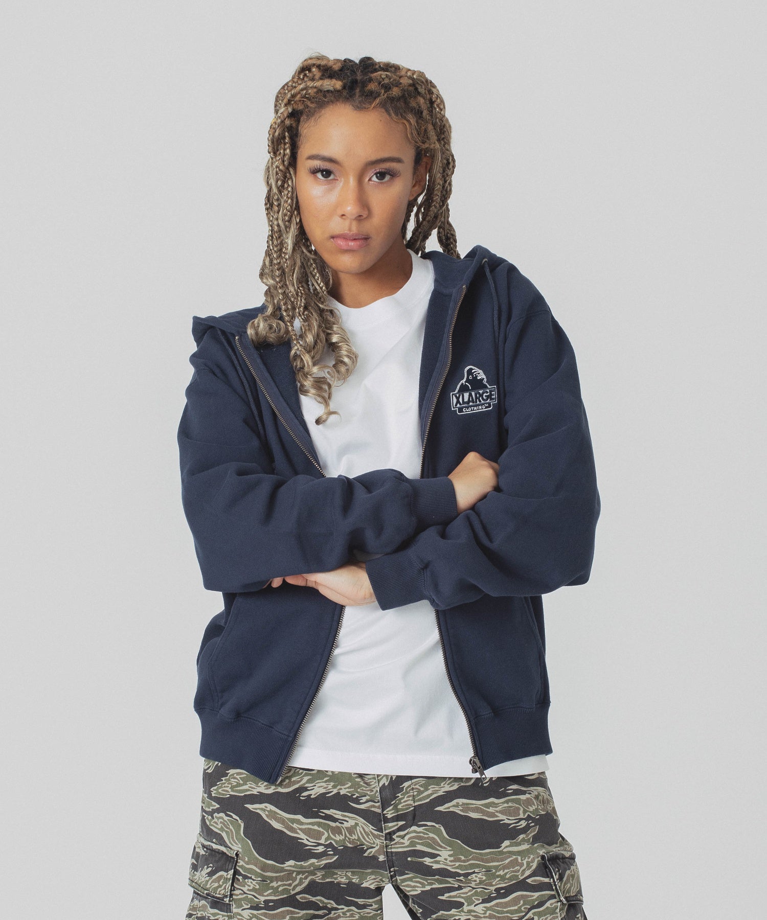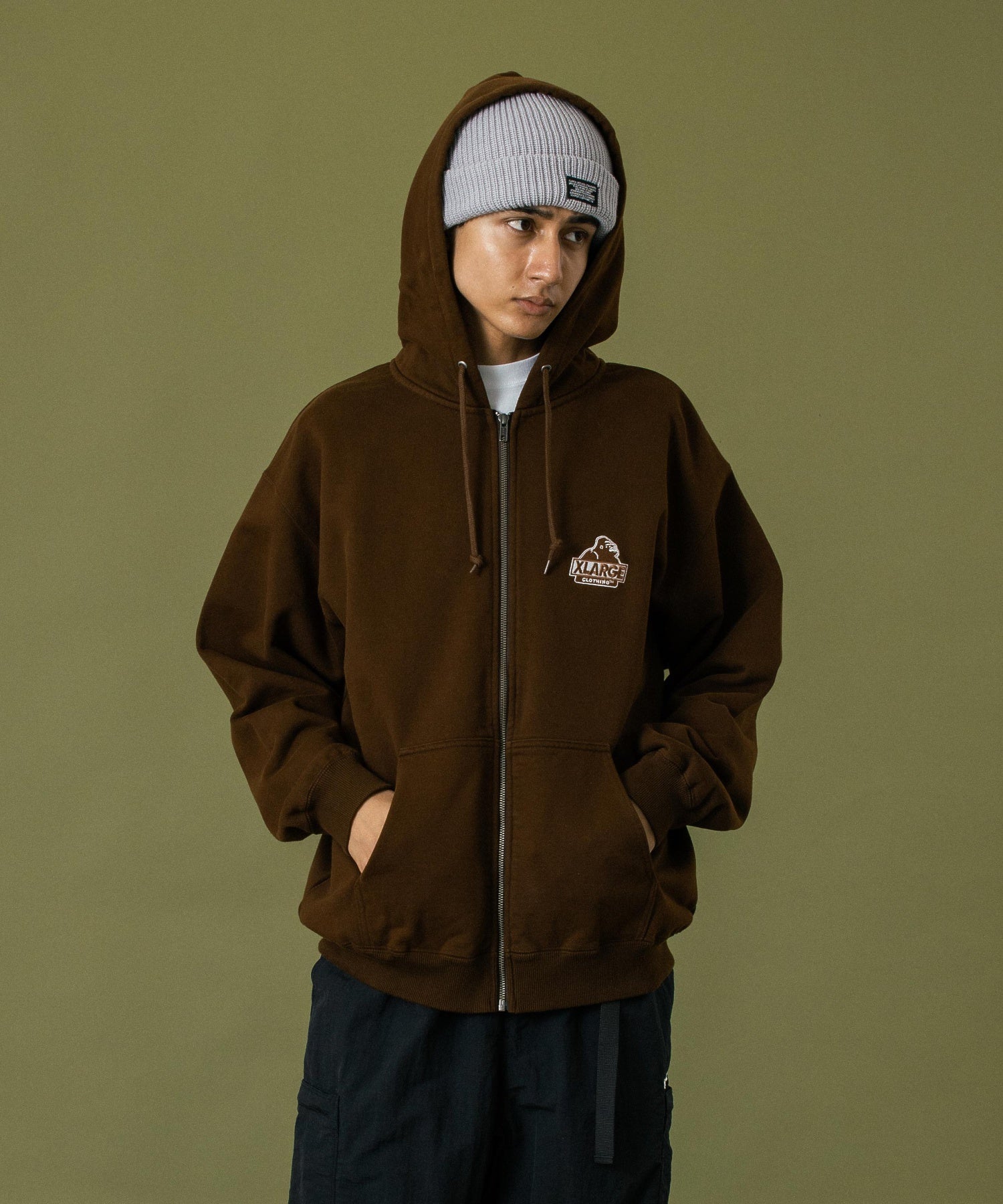 【ディテール】 ・バックに配置した、BACKSIDE SLANTED OG刺繍がインパクトのあるジップパーカー。 ・フロント左胸部分にはSLANTED OG刺繍を配置するなど、細部にまでこだわりのあるパーカーです。 ・重量感と頑丈さが魅力のXLARGEオリジナル21/6裏毛を使用しています。 ・透け感:なし ・裏地:なし(裏毛) ・生地の厚さ:普通 ・伸縮性:あり ・シルエット:ベーシック