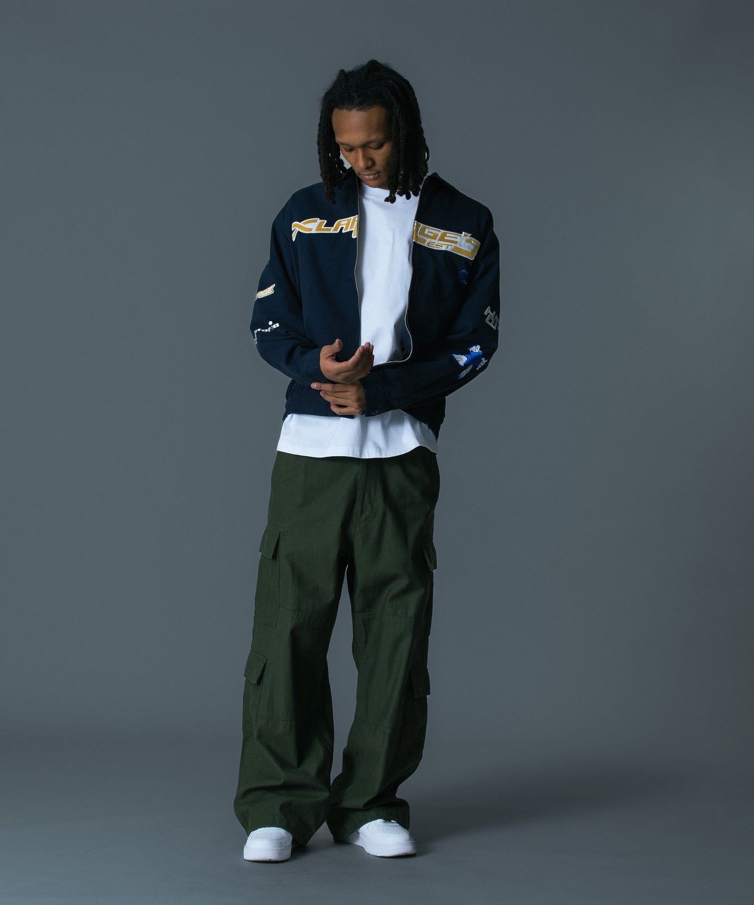 素材 表地:綿100% 裏地:ポリエステル100% ワッペン部分:ポリエステル100% 上糸:レーヨン100% 下糸:ポリエステル100%